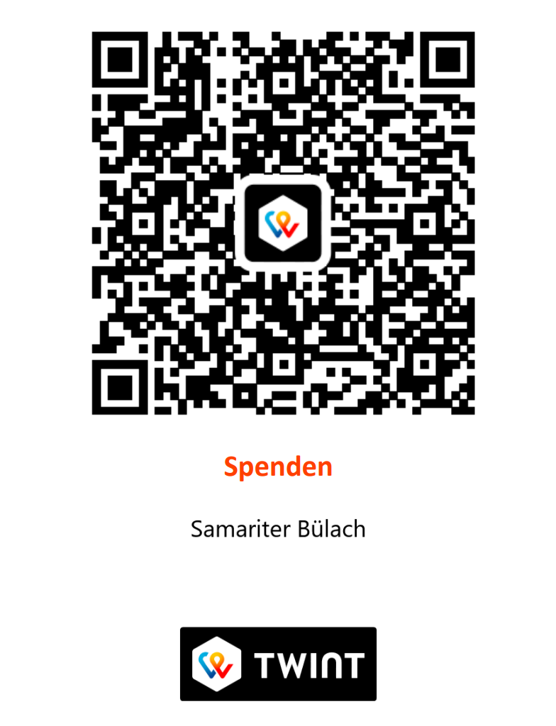 Der Samariter Bülach ist eine gemeinnützige Organisation, welche steuerbefreit ist. Jede Unterstützung ist für uns wertvoll. Sehr gerne dürfen Sie uns eine Spende per Twint zukommen lassen. Herzlichen Dank im Voraus.
